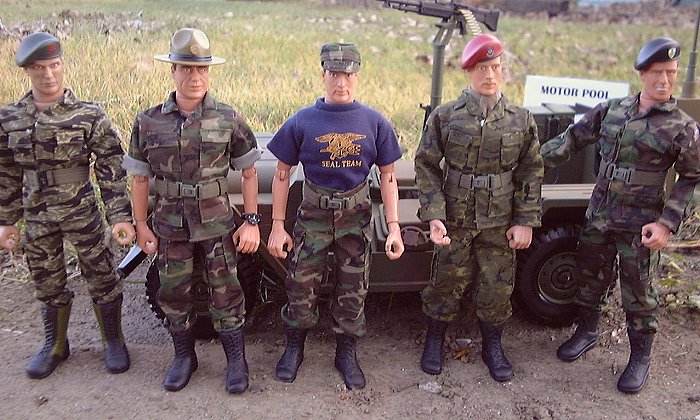| As you can see a few of my peers will join on us on this tour. From right to left, let me introduce them to you. Immediately to my right is Captain Nigel Dickens, Canadian Army. He is here on assignment, to share defense strategies with us. To his right is Captain Frank Devlin, U.S.N. SEAL team leader. Our official "special forces" liasion from the Navy. To his right is my old friend Sgt George Steel. He might be a 40 year old career Sergeant, but he's tough as nails, and always the best man to have on your team when the air of battle gets thick. And of course directly to his right is my great friend SAM. Who could forget him! He's the guy who drove the MUTT here to us. |