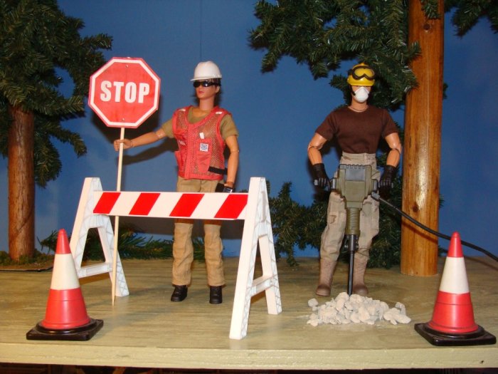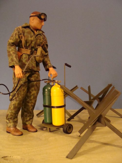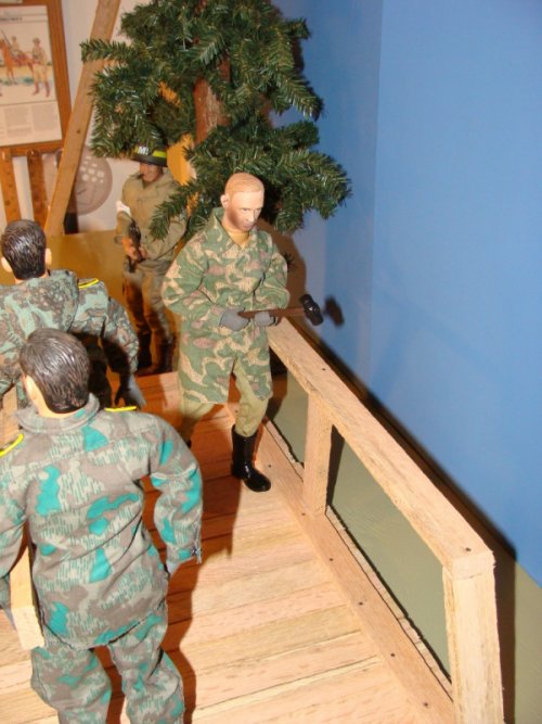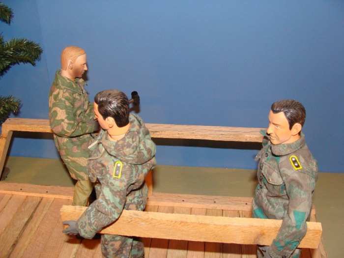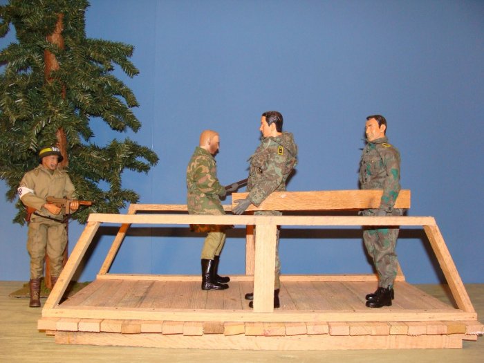 | We're pretty much settled into our new house and my new hobby area is nearing completion.My 1/6th Engineer Company is doing most of the work .Even George Patton showed up to lend a hand,but then he got mad because he couldn't be in charge. |