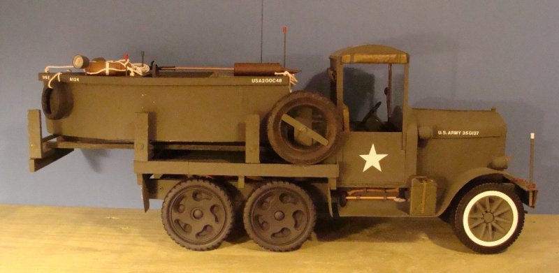 | This second vehicle is one of the 1/6th Engineers old 1930's 5 ton cargos. It's shown here hauling a bridge construction boat, as a cargo vehicle and as an anti aircraft vehicle. |