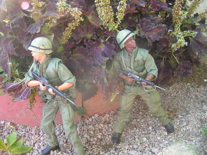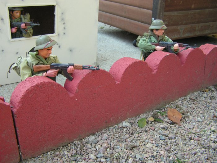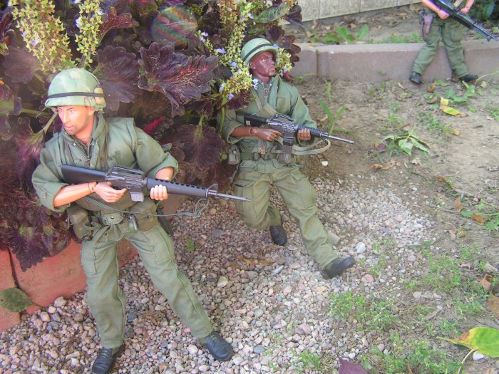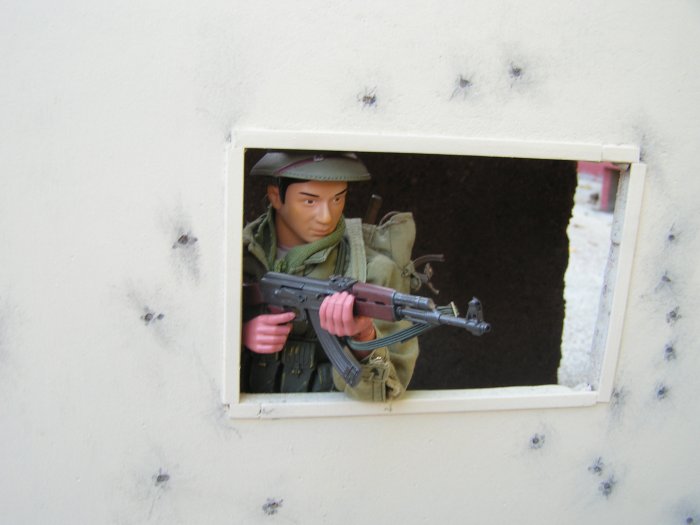 | Campbell sees the narrow alley ahead. He listens looking for any signs of a ambush. Sarge scans the rooftops on the other side of the alley.... |
