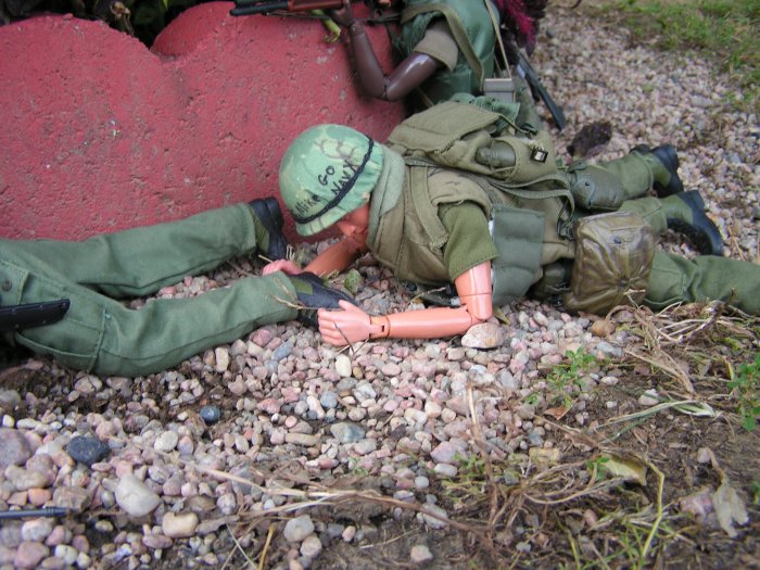 I put my head down and crawled after Campbell"s legs.The bullets kicking up all around me....