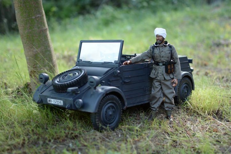 The figure is of a "Free India Legion," also called the "Indian Volunteer Legion of the Waffen-SS." They were part of the German military and were fighting with the liberation of India from British-ruled in mind.