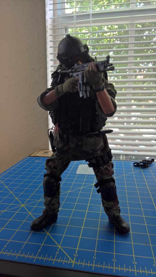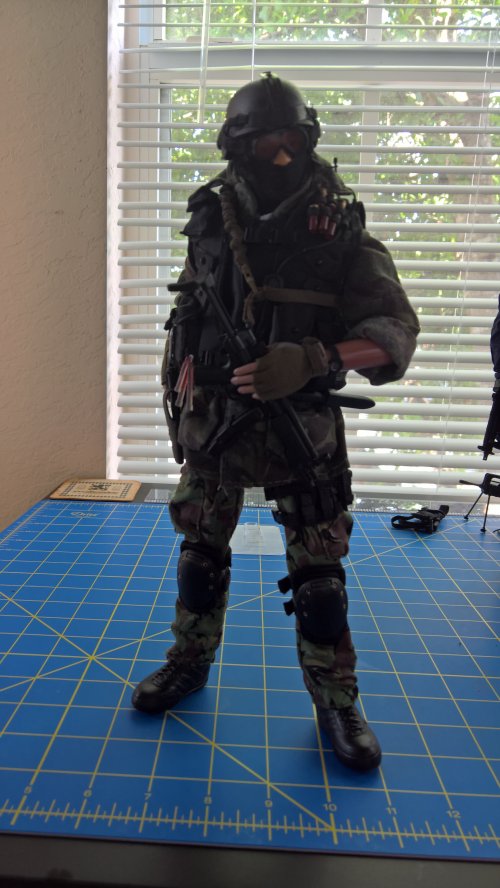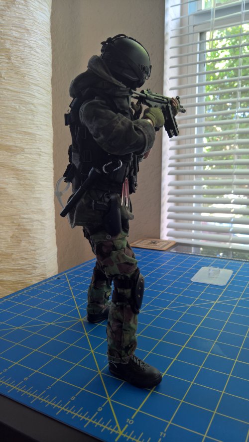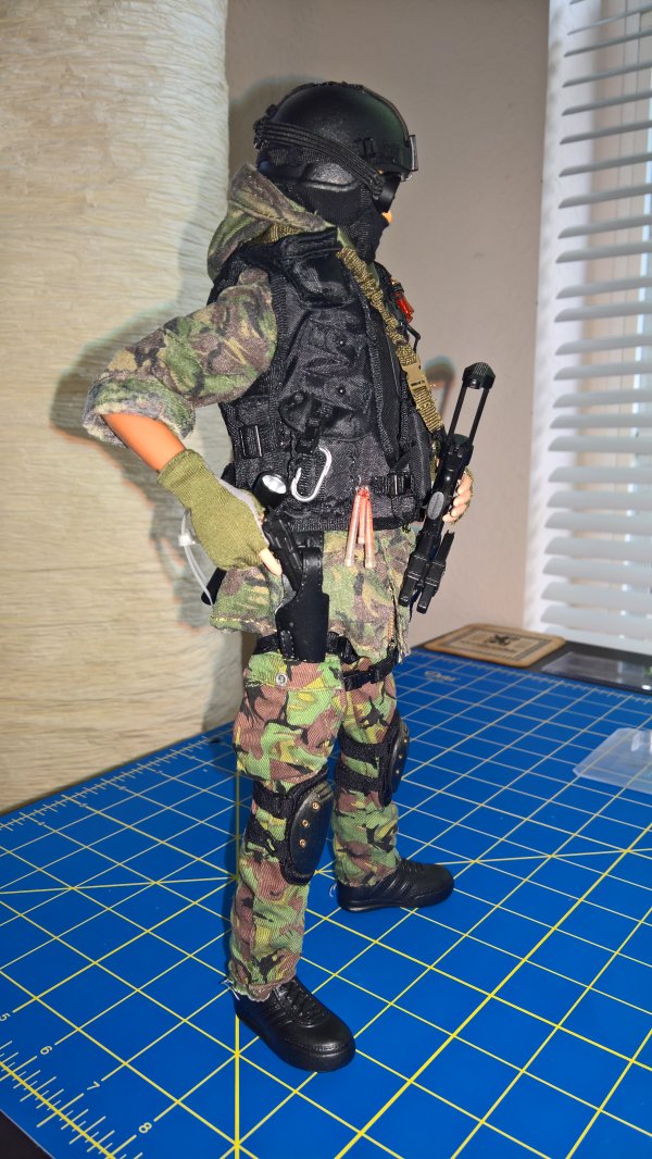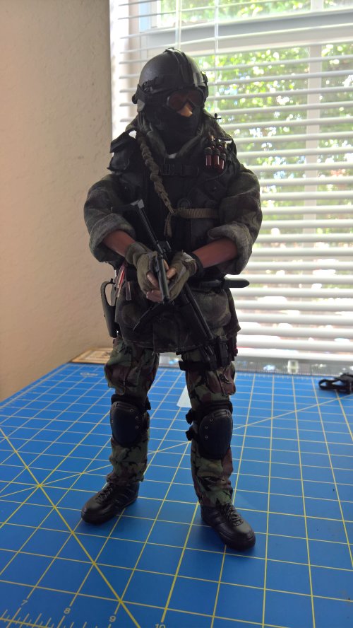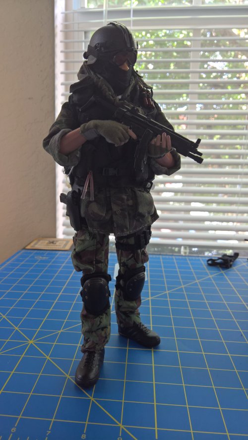 Anyway, the Breacher dude in the blue jumper is the result of that kitbashing. The figure is DiD, the coverall is Magic Cube, and there's stuff from Hot Toys, Very Hot Toys, BBI, Soldiers Story, some other companies I dont even remember the names of, and some of Dragons high quality end game stuff they put out before leaving the 1/6th market. The dude in the DPM is the Cheong figure with some additions from Soldiers Story, ACE, and the like. |