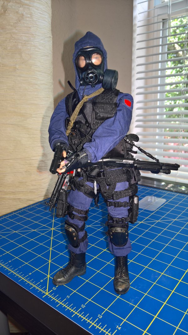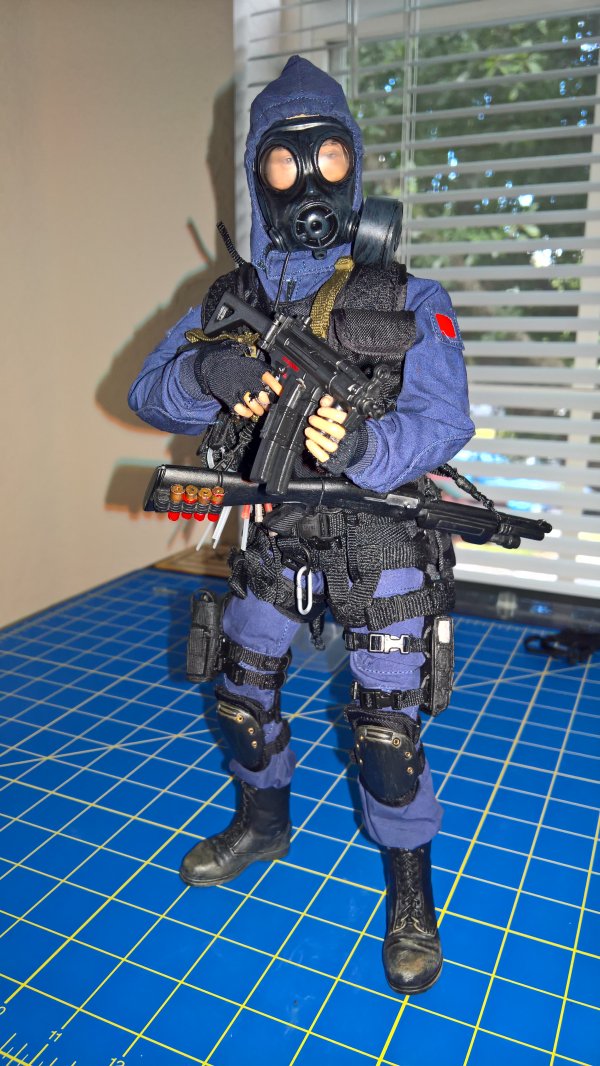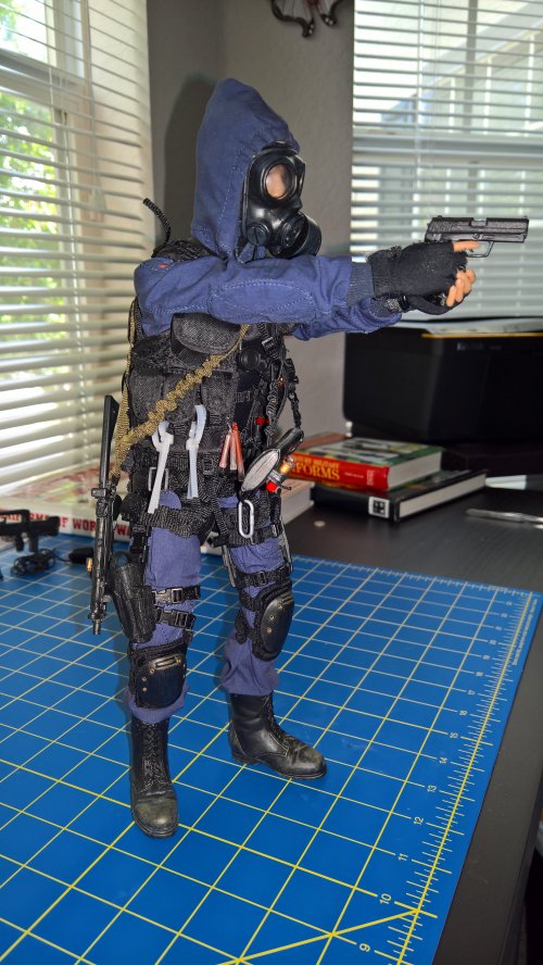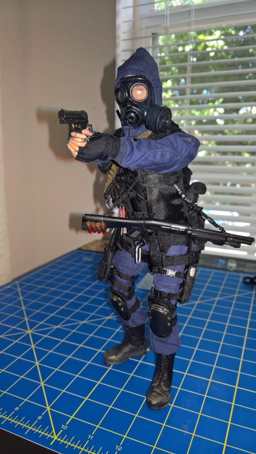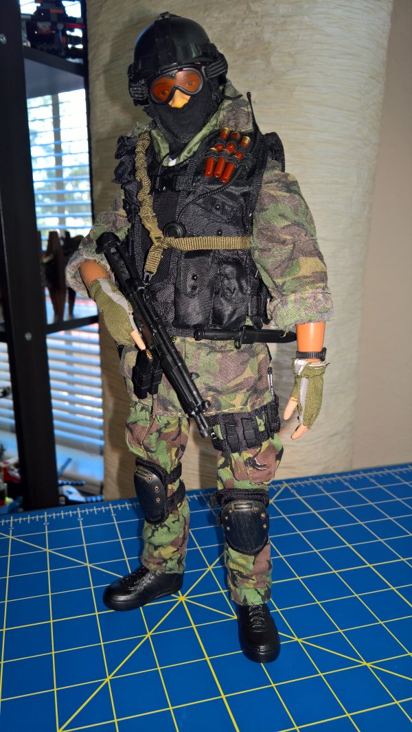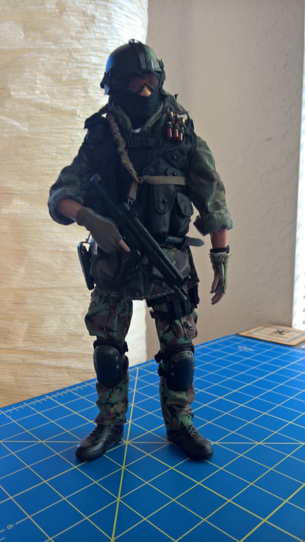 Anyway, the Breacher dude in the blue jumper is the result of that kitbashing. The figure is DiD, the coverall is Magic Cube, and there's stuff from Hot Toys, Very Hot Toys, BBI, Soldiers Story, some other companies I dont even remember the names of, and some of Dragons high quality end game stuff they put out before leaving the 1/6th market. The dude in the DPM is the Cheong figure with some additions from Soldiers Story, ACE, and the like. |