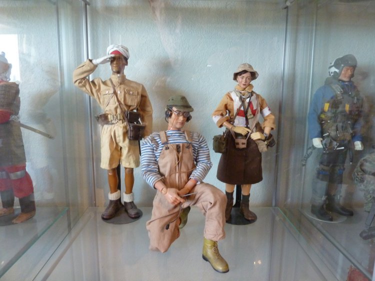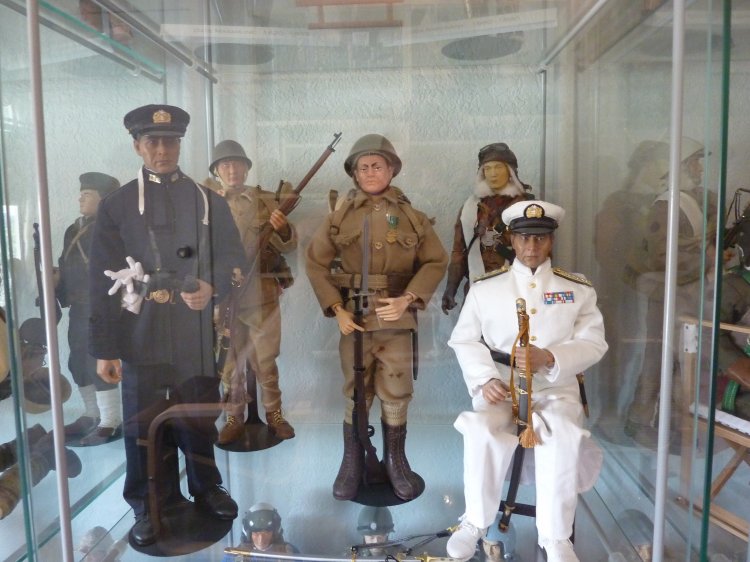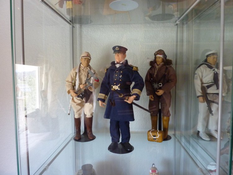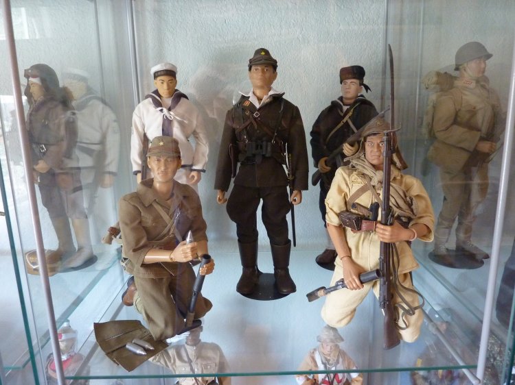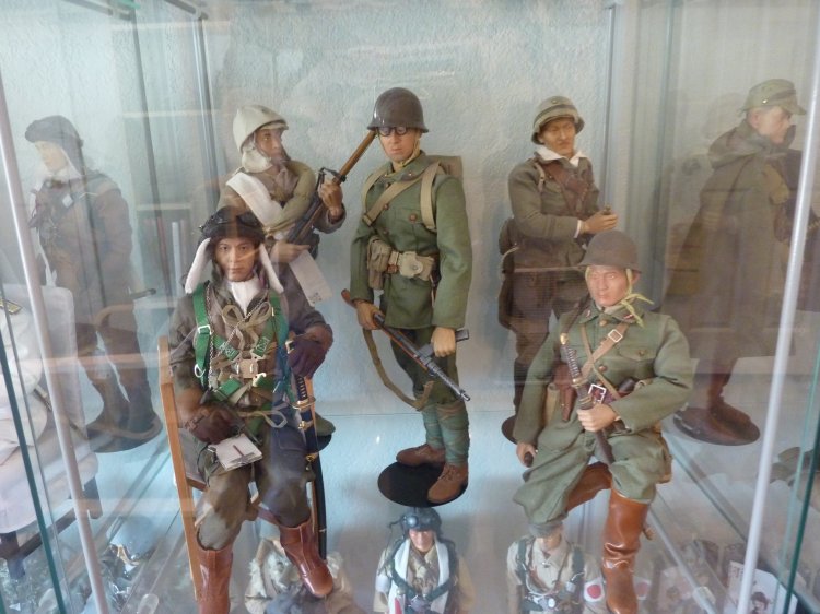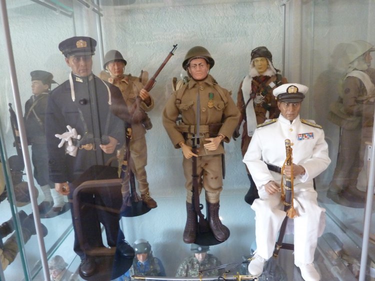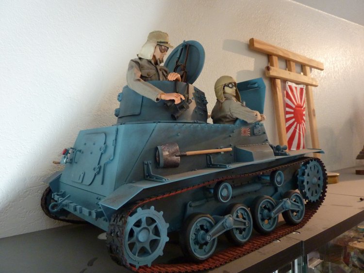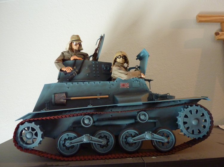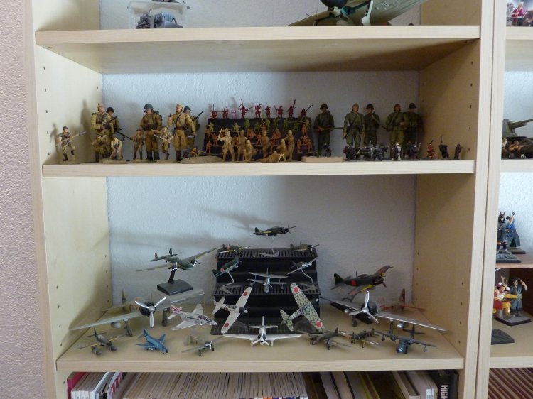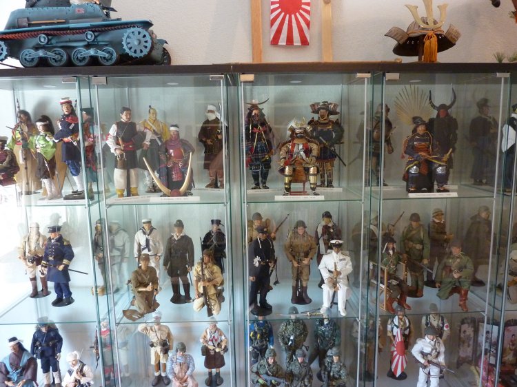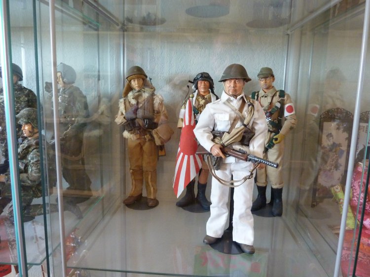 I've boxed up all my figures except my Japanese now, and turned my hobby room into a Japanese "only" room. (technically, there's still a Scottish figure, because I picked up the new William Wallace figure a month ago, and haven't demoted him back to his box and to storage yet). The tankette is a Type 94 made by our own Tank Mechanic. It's detailed up for the Imperial Japanese Navy, and to my knowledge, is the only IJN Type 94 Tankette in Sixth Scale in the world... A Tank Mechanic exclusive. The Ikea cases display my Samurai up on top, and then my other IJA/IJN, and SDF figures. Some are kitbashes I created, many are boxed figures straight out of their package. On the lower shelves, I created small displays of mementos: two displays of 1/6th items, one from WWII (like BC Ries's handmade grenade launcher and grenades, the Type 3 Heavy Machine Gun, etc.) and the other from Historical Japan. The other three cases contain mementos from my family's time in Japan: including toys and comic books that I had as a child. The other display is of "other scales", and Japanese Military models. Soldiers, sailors, tanks, planes, etc, from 1/144th to 1/35th scale. Also, of course, my military reference library. |