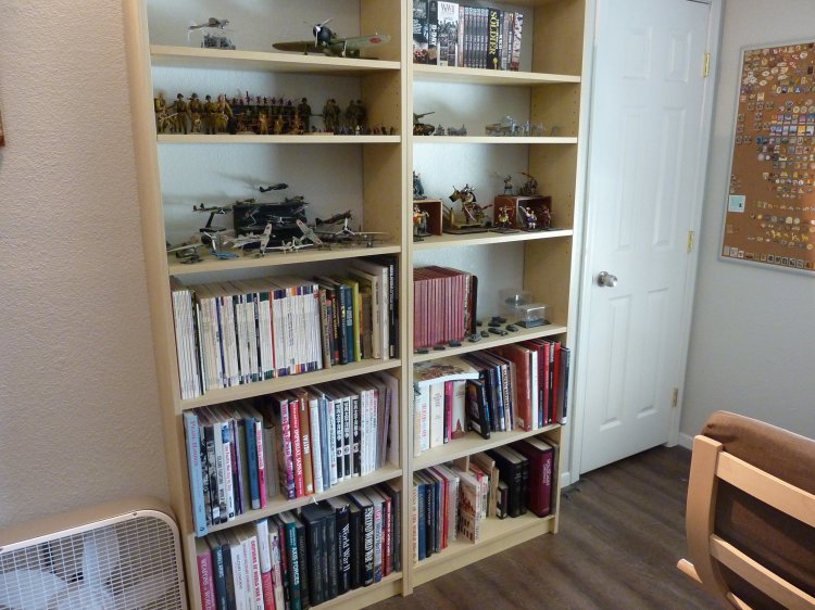 | More of my off scale Japanese models/toys, and a view of the shelves on both sides of the room. |