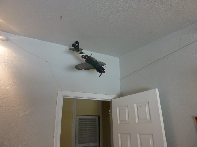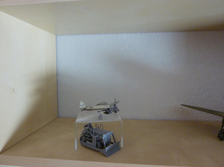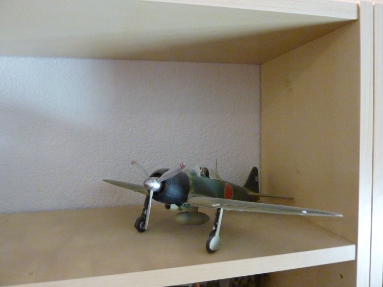 | Library of reference books, a 21C Zero model on the shelf, and another one (bigger) over the door. And, some misc Japanese modes (all metal Zero, and a Japanese Mitsubishi Bulldozer. |