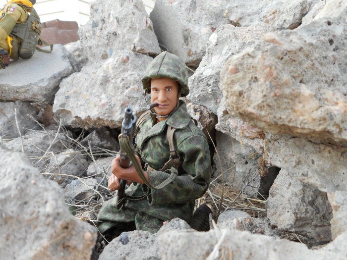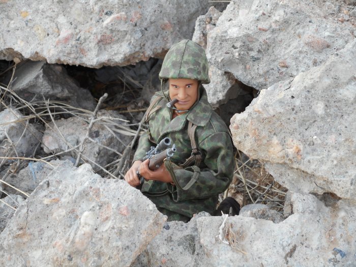 Cool shots my friend! I have a TUS Marine in the duck camo with that same exact headsculpt. Perfect for a roughneck Marine :) Special thanks for sending him in and letting us take a peek at him. - GL