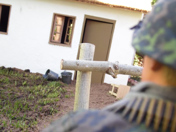 "The cottage was unfinished, and still remains that way when I was taking the pictures. The woman is also some Star Wars figure from a cheap company."