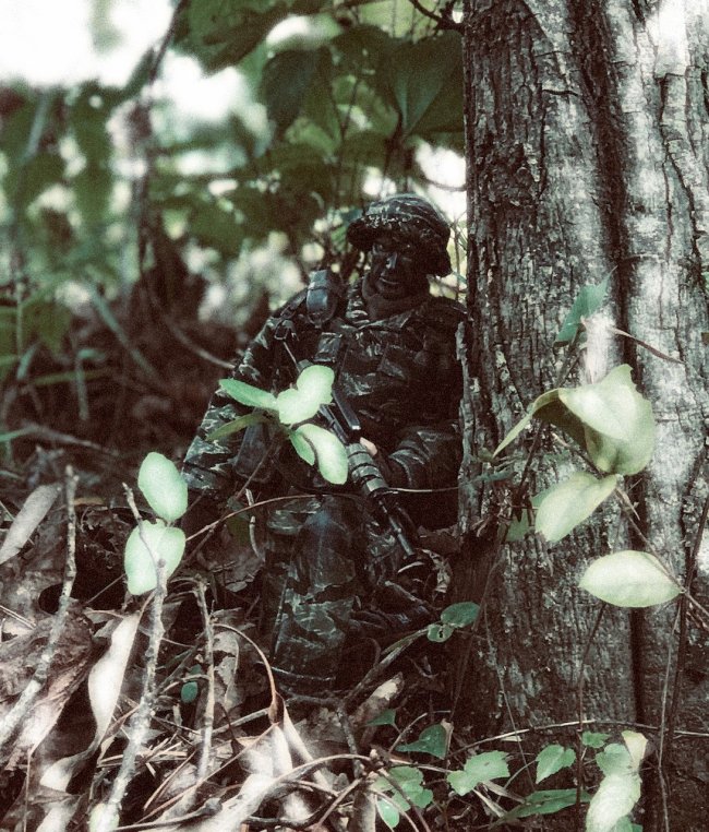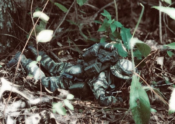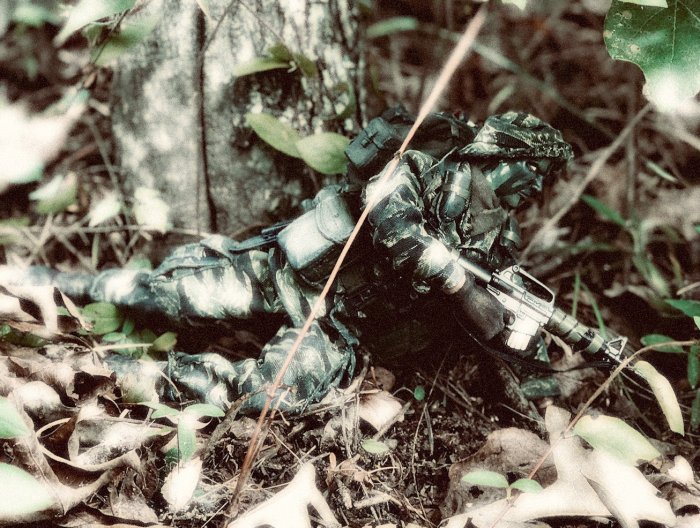 | Here is my TUS LRRP figure moving into an OP to adjust some indirect fire on an enemy position. |