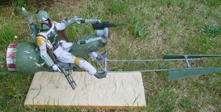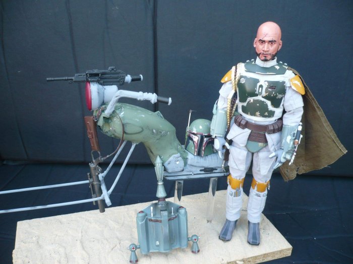| Custom Boba Fett with His Speeder bike he rides in the Comic saga of 'Bar Kooda'. |