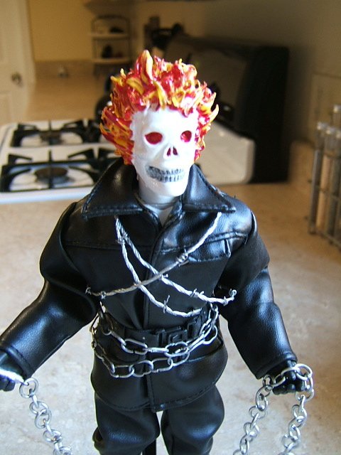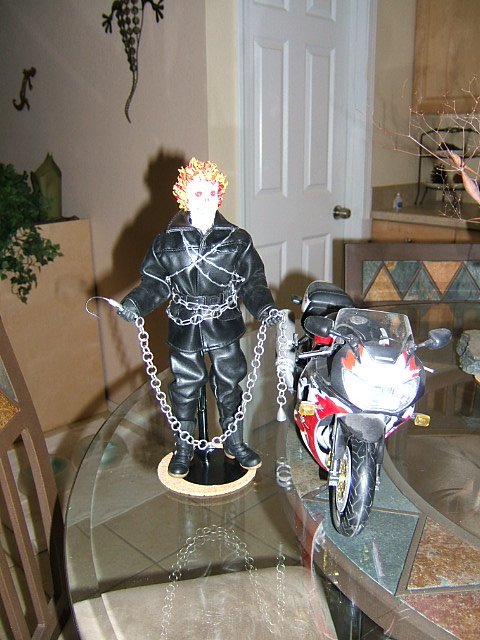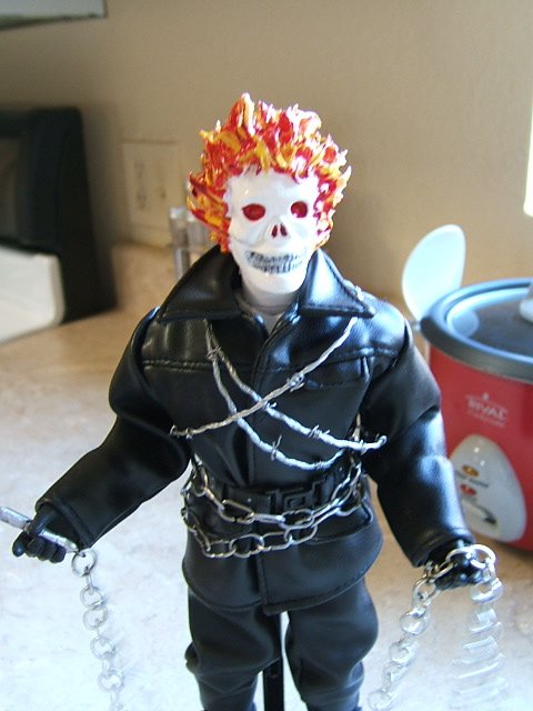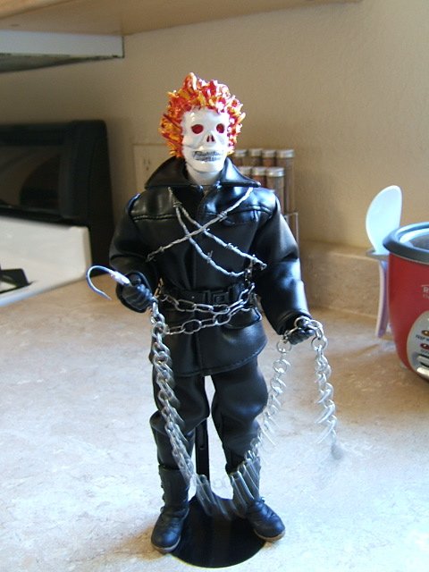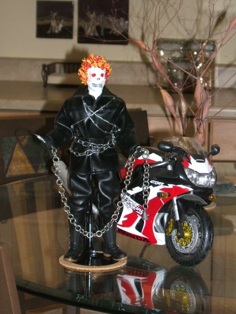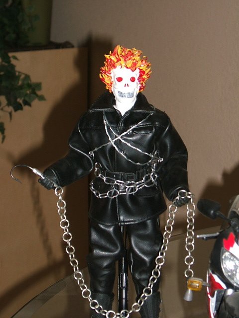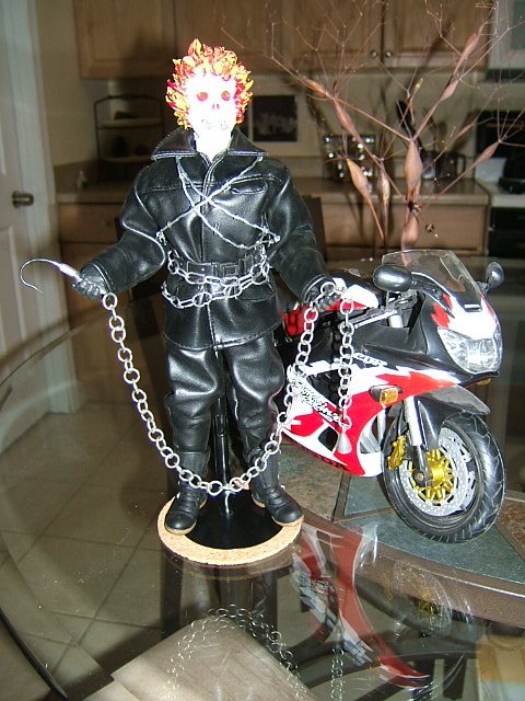 I don't have my shadowbox handy, but i wanted to show a quick look at my latest figure, Ghost Rider (inspired). He's more a tribute to Johnny Blaze, but he was fun to make.