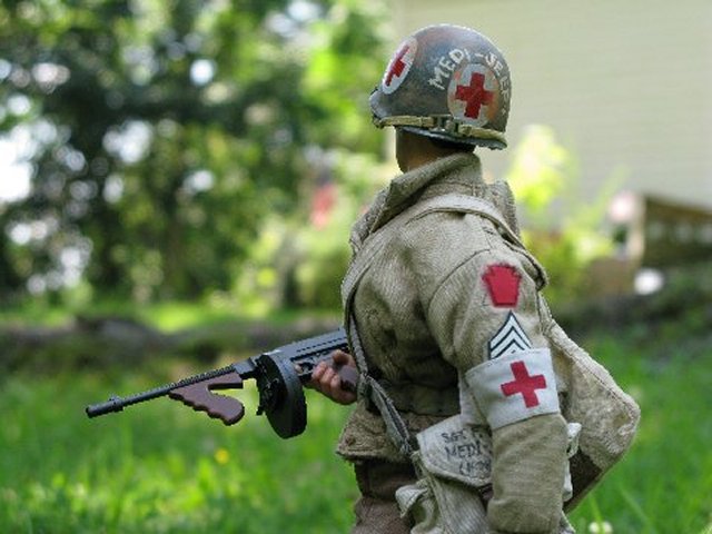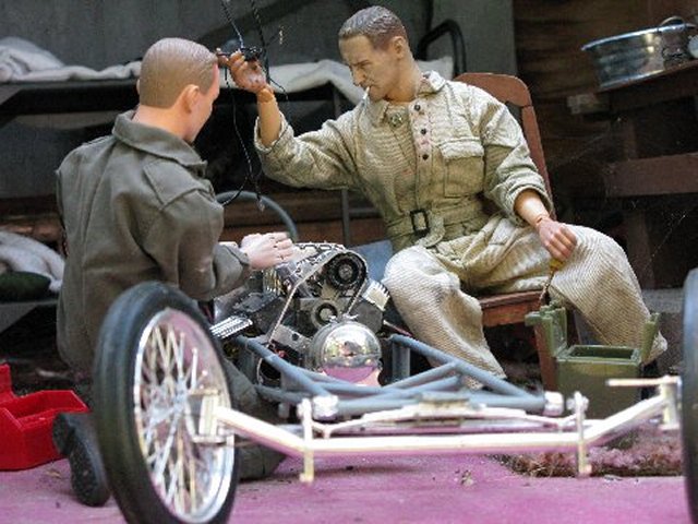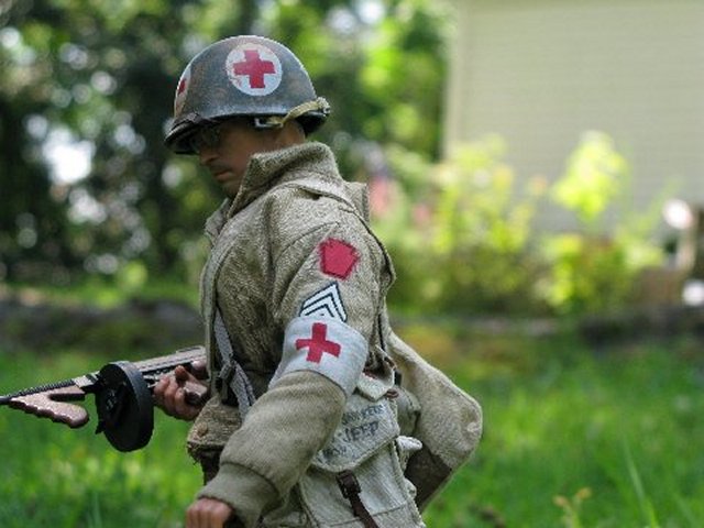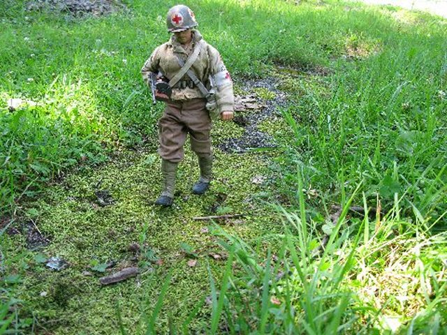 BHD was attempting to figure out where his .30 crew landed, when they jumped out of the C-47 over France and got separated. Bud and Mike walked along a path that they came upon, and stumbled upon Lt. BHD, sitting up on a hill. As they all walked towards Belgium, and Marwencol, they had to walk over this huge bed of boulders and tree limbs. It was tough going, and when Bud stubbed his boot on one of the boulders, his M-1 went off, accidentally. In the silence of the wilderness forest, the shot reverberated for what seemed like minutes, and awakened a silent giant... Graeylin directed the Bren crew to where they should set up their weapon and gear. Cpl. Merry, directed the other Scot to perch himself atop Stoffel-Navarro Park, and keep a lookout for Dream Killers (Nazis). Medi-Jeep+ headed out of Marwencol and to the next town, the town of Gunther, to get the much needed medicine. He thought about letting someone know that he was leaving town for awhile, but opted not to..... Respectfully Yours sir, Cpt. Hogancamp 9th Arm. Div. PS. sir, The first two photos are of the shirt that iLaF made for me :) |