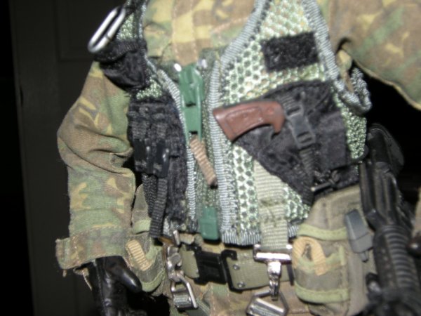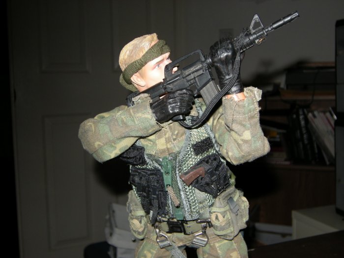 This is a Navy SEAL preparing for a recon swim along the Kuwait coast days before the invasion. He is holding a boogie board that the seals had ordered for there long swims to shore.