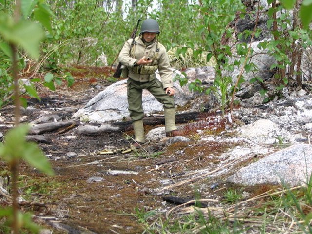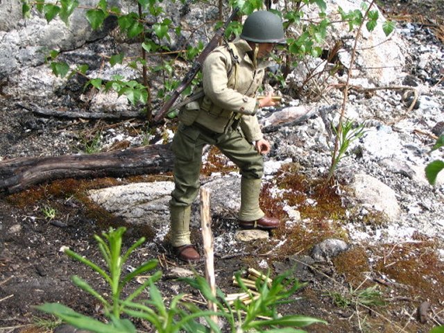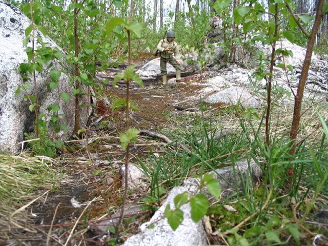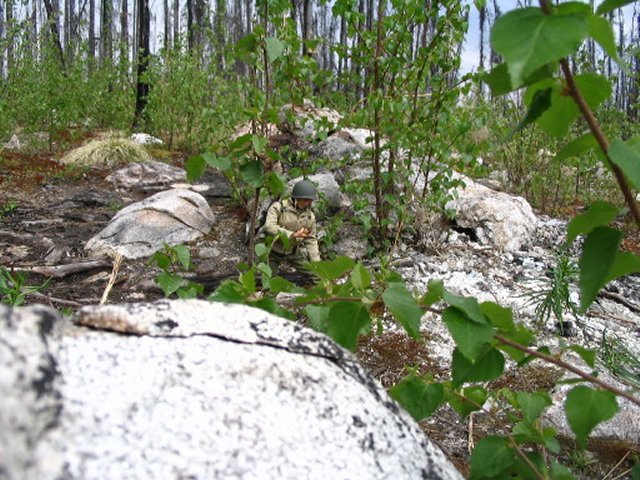 | After walking a few more hours, AAAHH finally! Someone was here. A dozen or so shell cases but I still see no movement anywhere. I start off again slow, my head on a swivel. It sounds like war but I smell and see no death. I wander this place for days. I start calling for someone, anyone, but still no response. As I'm walking along I realize that the throbbing in my head has stopped. Then I hear somebody call out Joe, Joe. Is that me? So I respond, but I get nothing back. Is this a dream? I pinch myself once, twice, but i'm not waking up. |