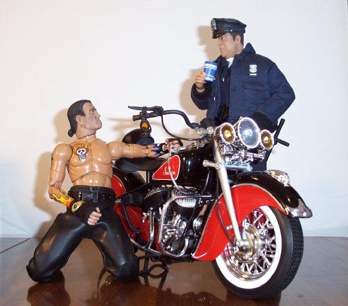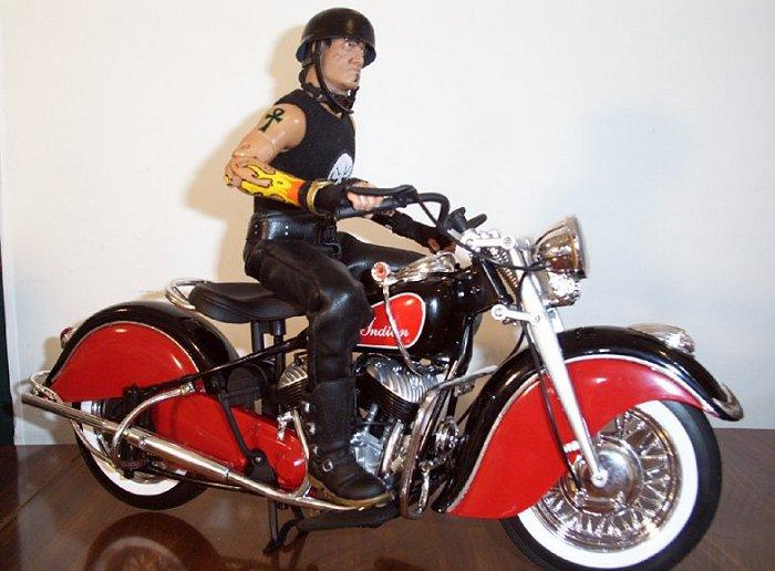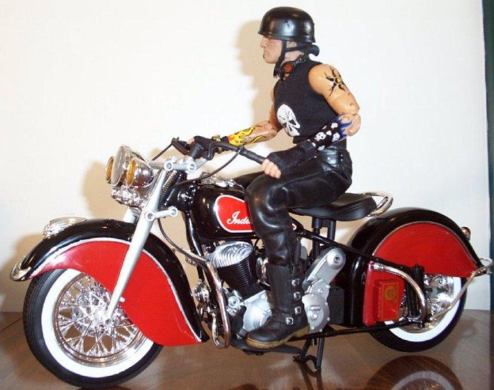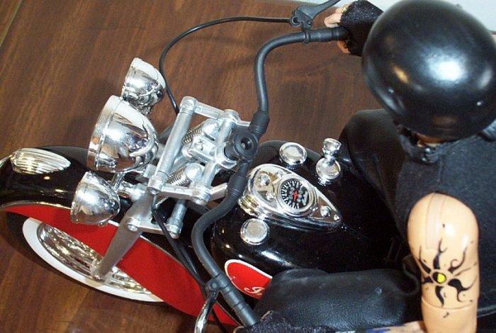 | Awesome work on that Testors 1/6th scale Indian Motorcycle, Storm. JJ look awesome riding on it too! A really sharp looking project here all the way around. Keep up the great work my friend. Special thanks for sending these in and sharing them with us. -- GL |