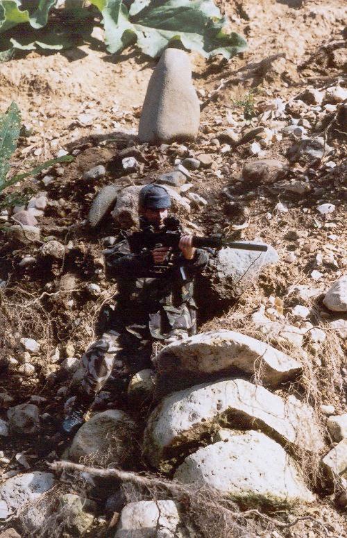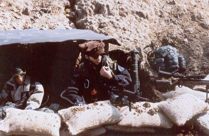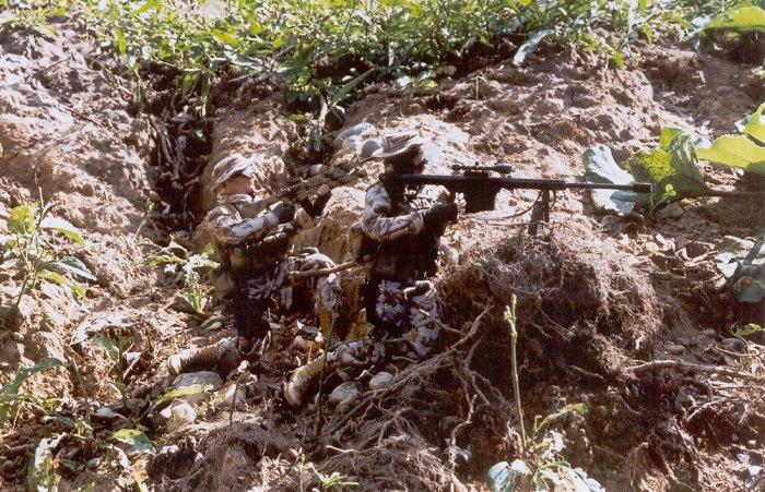| The Asst. squad leader and counter sniper set up to cover the river crossing. |