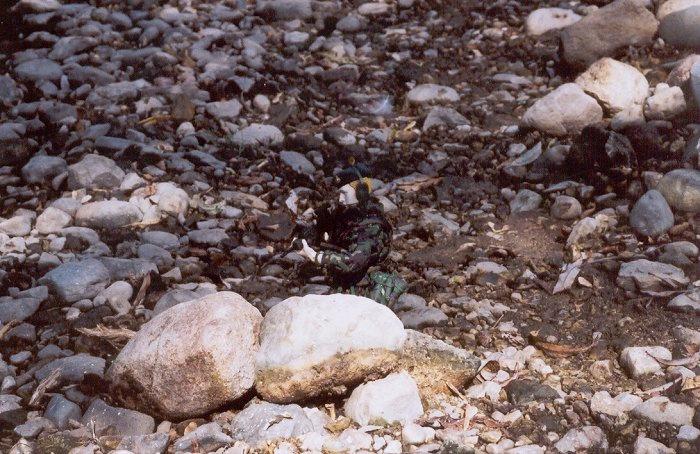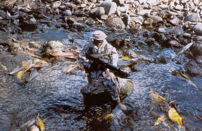 | The squad leader and RTO cover the SAW Gunner from the bank of the river. |