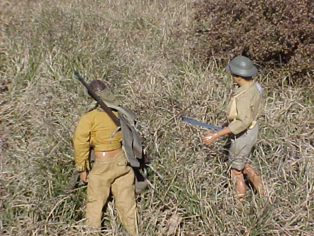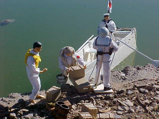 Once the beach is secure, they begin to unload. and two sailors stand guard