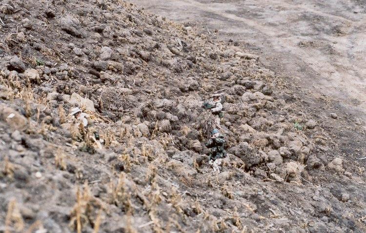 | The Squad leader hopes the enemy soldier does not spot his squad until they have good cover. |