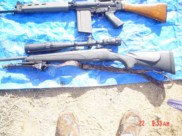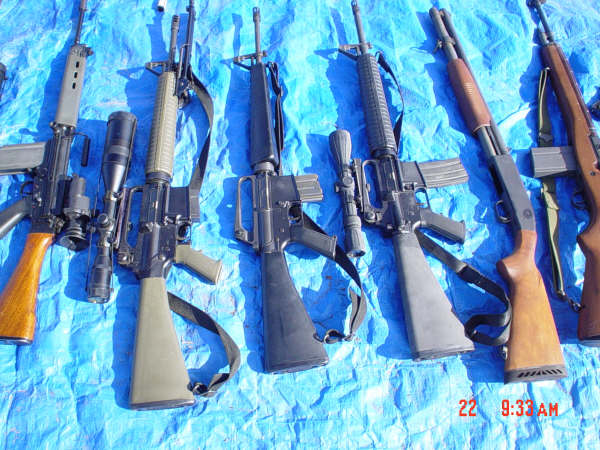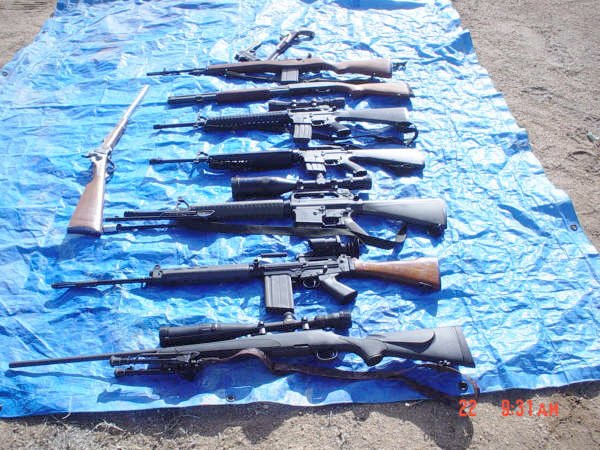 | Just thought you troops would like to see some of my other toy's / Fal 308 / AR10 7.62 / Colt AR15 223 Early model / AR 15A3 5.65 Rock Riverarms / M14 7.62 / Sharp's not a repo 54 cal / Harpers ferry 18 07 not a repo flint lock / Remington model 700 300 win mag / colt 45 marked us property us army / and a Mossberg 500ATP85P 12ga |
