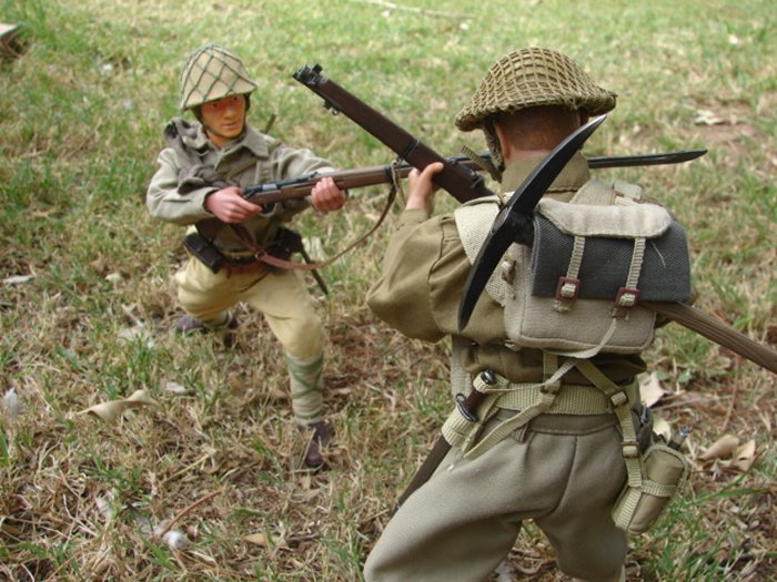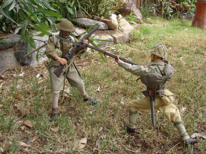 | Here are some pictures I took recently. A Japanese scout surprises a British sentry somewhere in Malaysia and they find themselves in a close quarters battle with neither one expecting or showing mercy. |