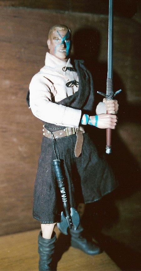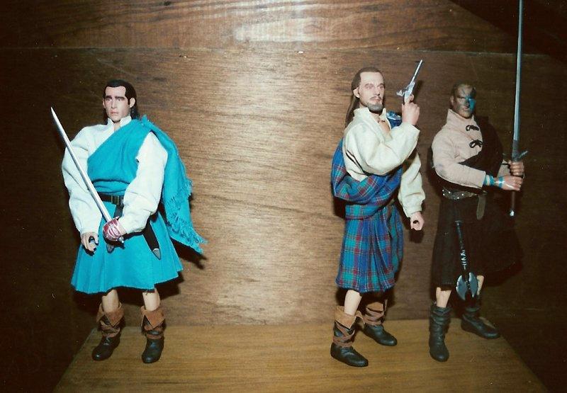 | Two really nice looking figures here Mikey! I never thought about using that Sideshow Qui Gon Jinn headsculpt for Rob Roy, but it was perfect since Liam Neeson played both roles. Great use of that Panzer commander head too for that Celtic Warrior. And both of them are really sharp next to your Duncan Macleod figure. Special thanks for sending these cool projects in and sharing them with us old buddy. - GL |
