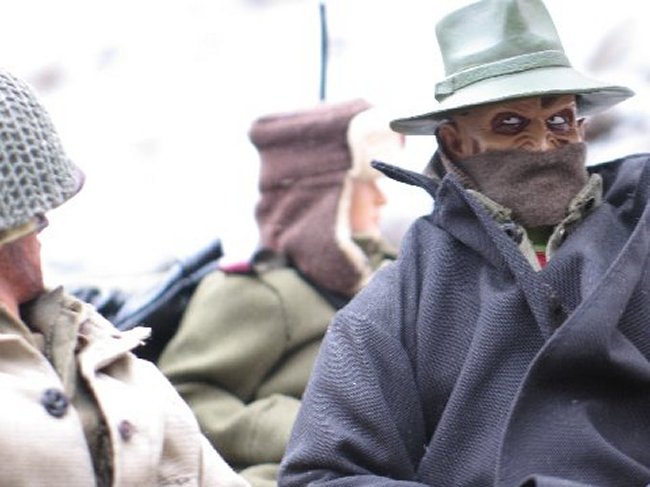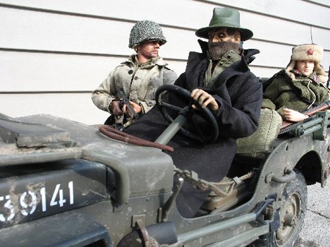 | Deja Thoris warned me that the Cpt. and Sgt. were Nazi spies. I ordered Anna's double, Deja Thoris, and Friedrich to go to the store for me... the Sgt. insisted on going with them, just like I suspected he would. Before they all left, Freddy found a sweater and a coat to wear, because it's really cold while driving a jeep with the top down, in the middle of Winter. I told Deja that I didn't want the Sgt. to come back with them... she knew what I meant. The new Cpt., was on his way to HQ, and he would get his, when he returned. |