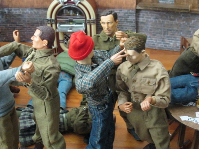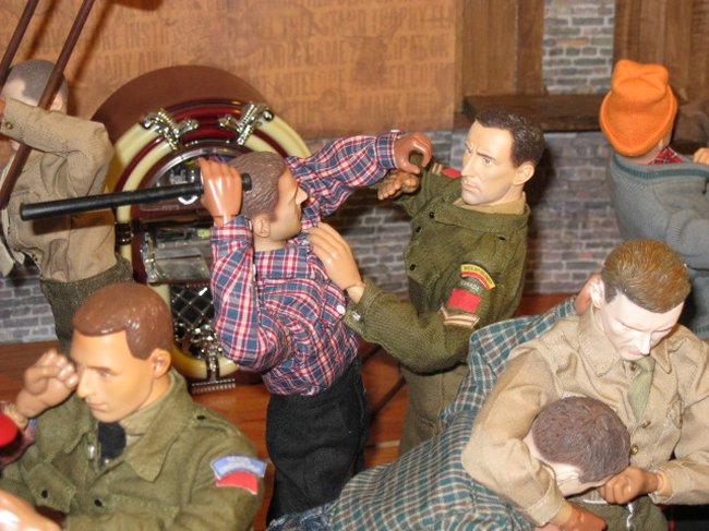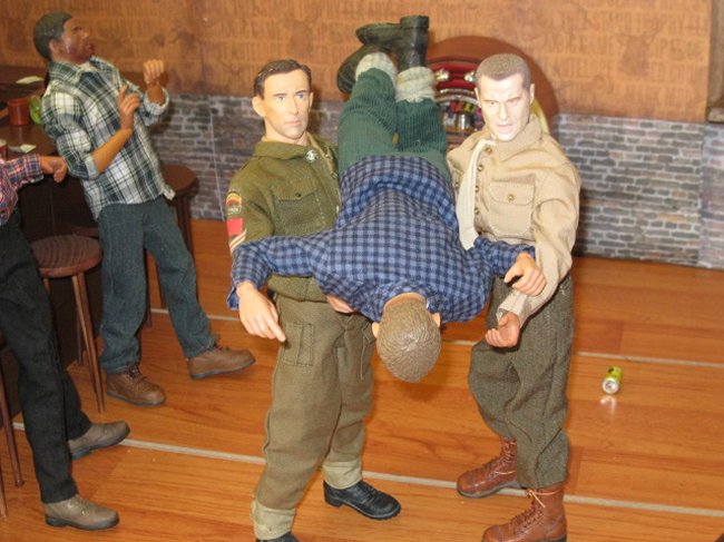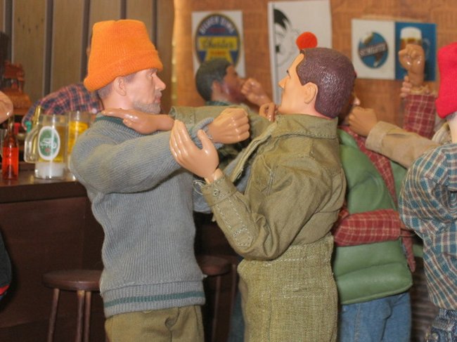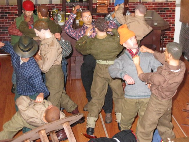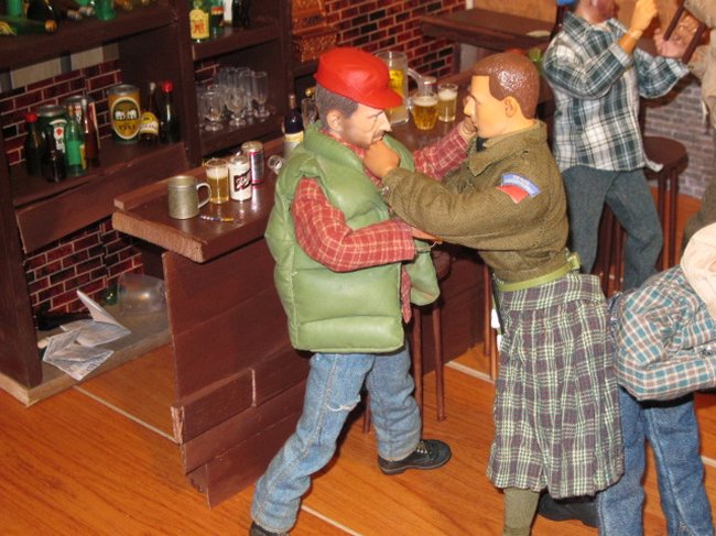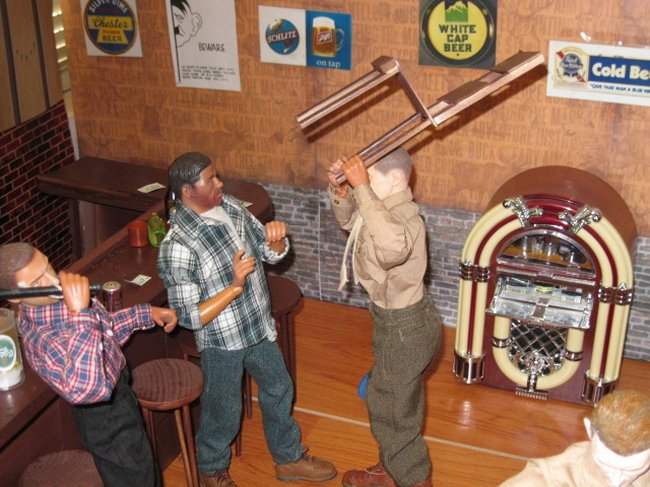 | Now that's quite the bar fight old buddy! Another great setup with some cool poses and of course, some terrific looking figures. I hope that guy that took the bottle to the head didn't get too injured :) Great stuff once again Zman! Special thanks for sending it in and sharing it with us. - GL |