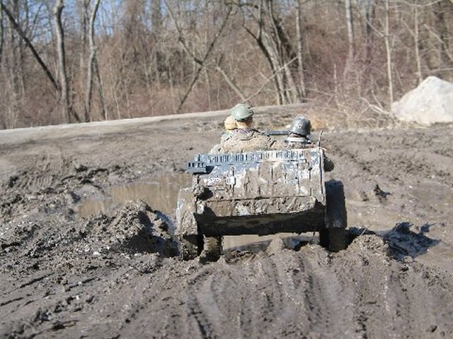 The Marine 'brass' sent a qualified Marine to take the message to the Brits, via motor-bike, and the Marine's equipment were a .45, and Thompson, and a flame thrower. . .