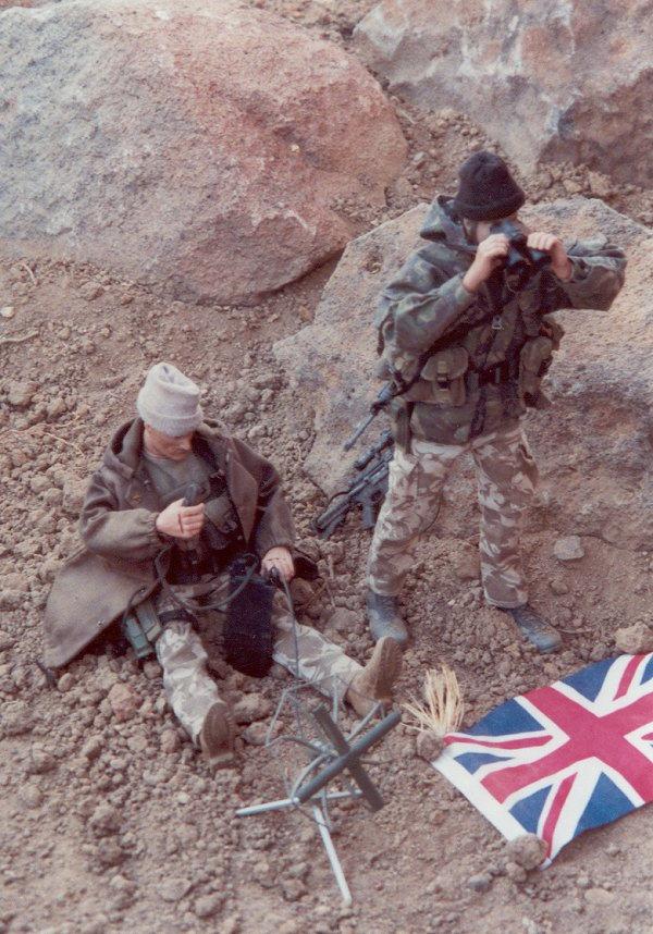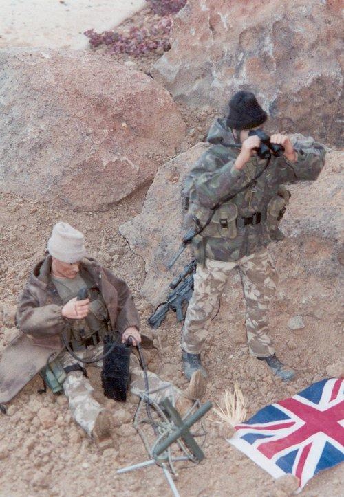 Calling in an air strike. The British flag is there to prevent friendly fire from allied bombers.