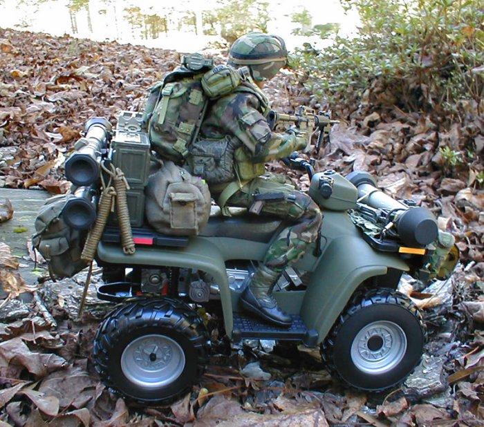| Wow! Too cool New World Man. Definitely a sharp looking 1/6th scale project here all the way around. From your cool looking figure to that awesome accessoried ATV, I thought everything just looked perfect. Definitely a piece I wouldn't mind having in my own collection for sure. Great pics of it here too. Special thanks for sending this terrific project in and sharing it with us. -- GL |