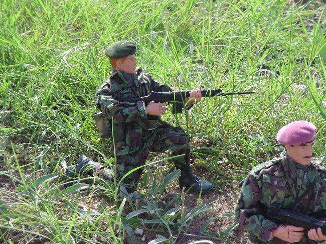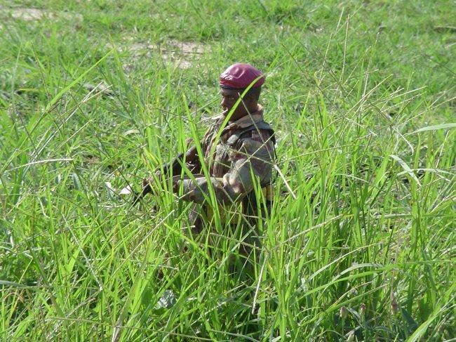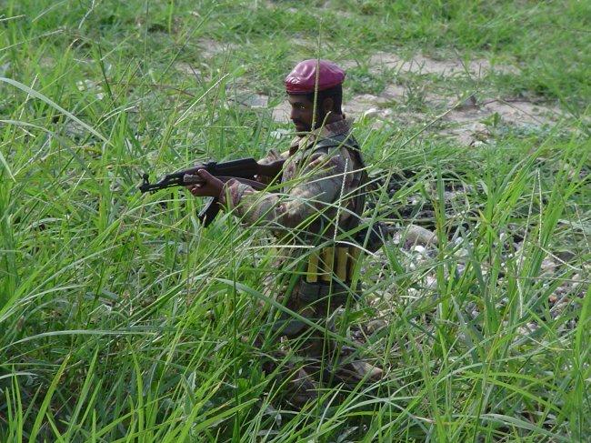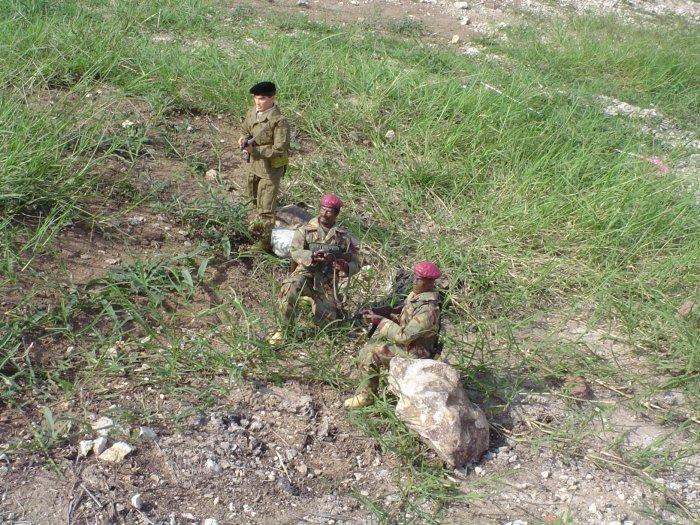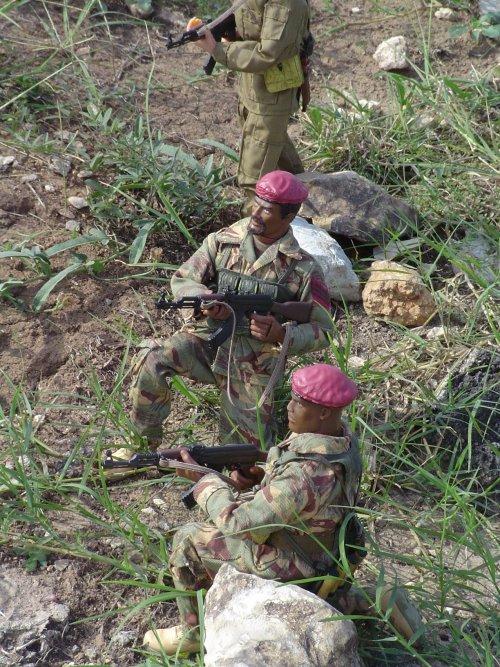 The advisor, and Sgt. Ngila, along with a fellow Simba, fire their AKs.