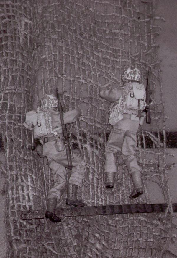 Marines going down the cargo nets.