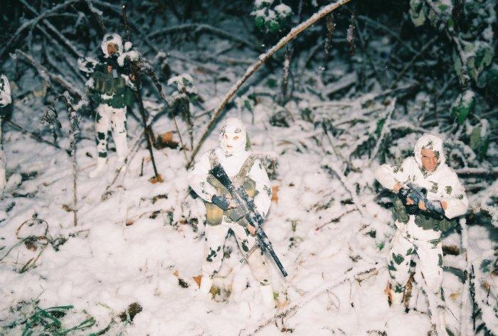| Some really sharp work here for your first snow shoot Desert Dog 197. Hopefully now that you've moved up into a place that has some snowfall we'll see a lot more from you. All your arctic troops look really cool for sure. Special thanks for sending this one in and sharing it with all of us. - GL |