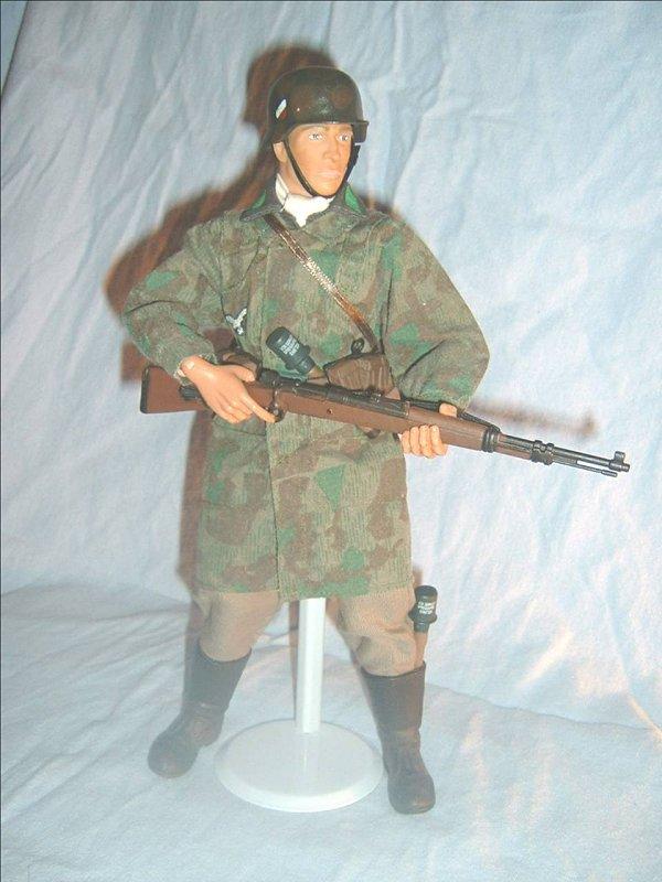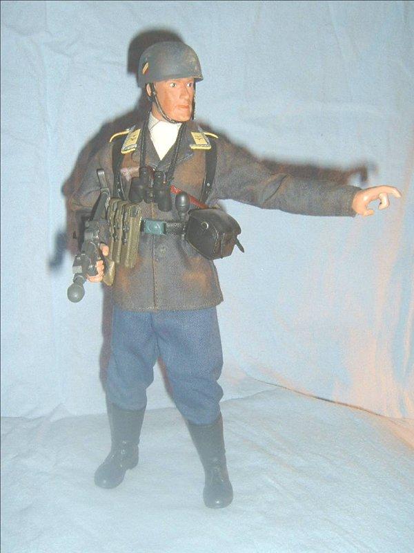 | This set is my custom Fallshirmjager. The Fliegerbuse is made from a 21st Heer tunic stripped and dyed and redone. He is an NCO in France. |