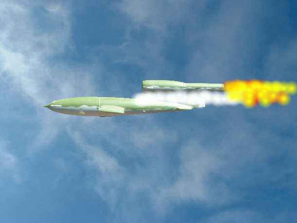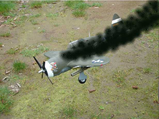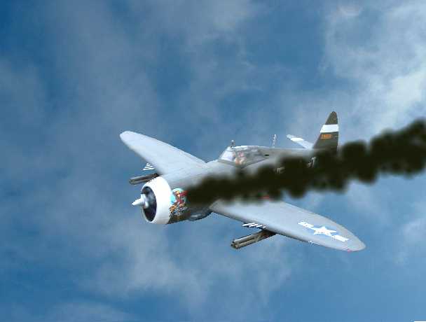 | One of the P47 bullets, hits the V1's fuel line, and it begins to leak fuel. |