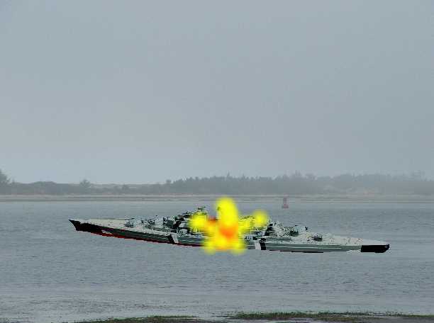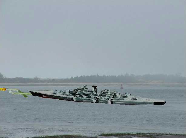 | Sneaking into France, is the Bismarck. It's on its way to gather supplies. Losing altitude, the V1 starts to crash over the English Channel. |