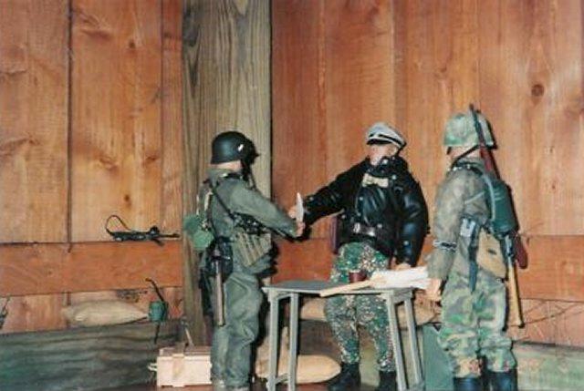 Commander Kruger: "Captain, take zis to za Amerikan Commander's headquarters. Capt. Hiesser: "Yes sir!" |