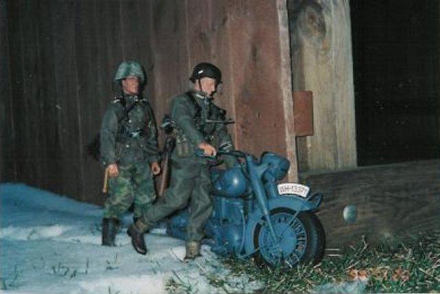| Pvt. Phillips: "Sir, these here Germans came on a motorcycle hold'n a white flag. Said they had a message for ya." |