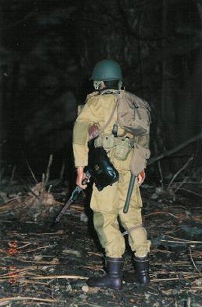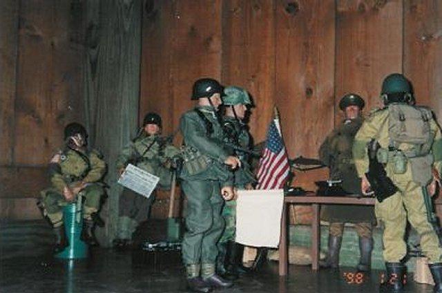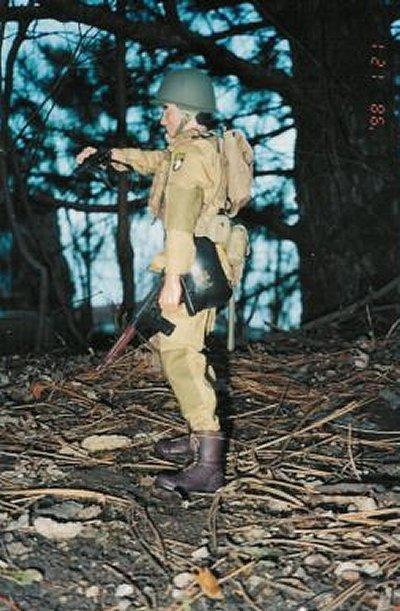 | Meanwhile, Pvt. Phillips of the 101st is on guard outside the 101st Headquaters. |