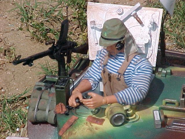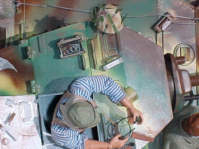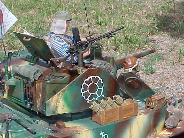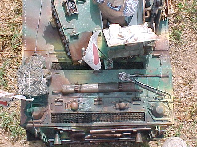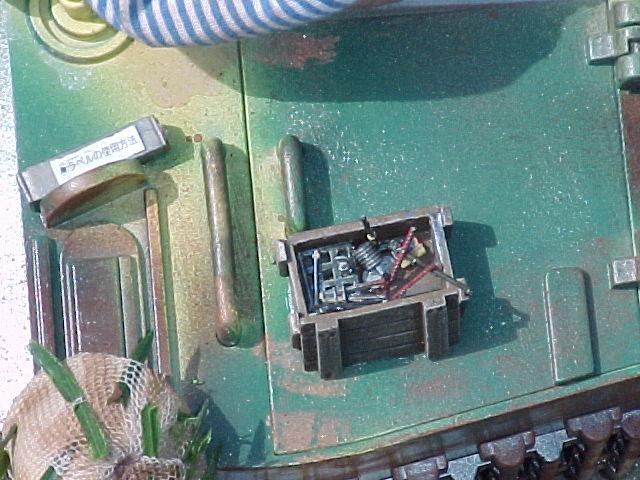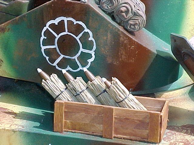 Side view of the turret, with the Chrysanthemum marking of the IJA unit, a case of shells wrapped in straw protective carriers.
