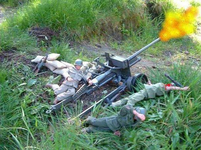| The sniper sees the Americans fire the cannon, but it's too late! |