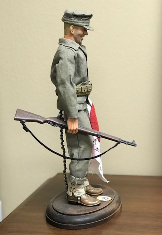 I was in the Marine Reserves before the Army, so in keeping with the finest traditions of the Corps, this Devil Dog is modeled after a Marine from 3rd BN, 23rd Marine Regiment, 4th MARDIV, from the battle of Roi-Namur on the Kwajalein Atoll, Marshall Islands 1944.
