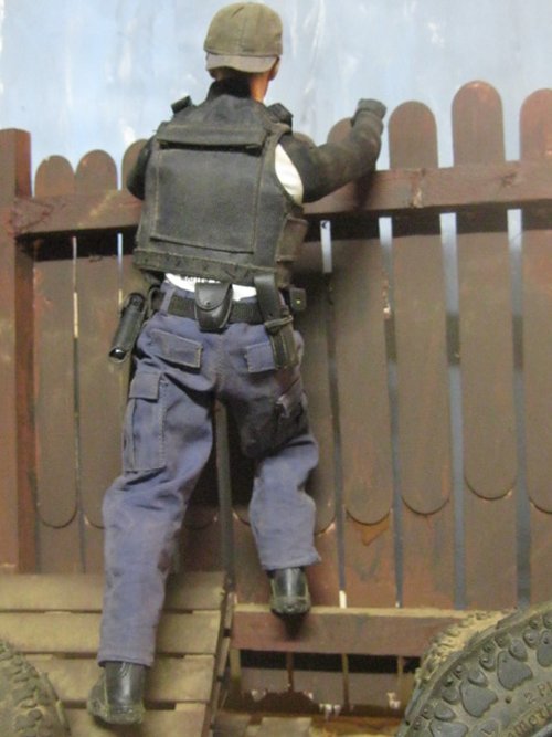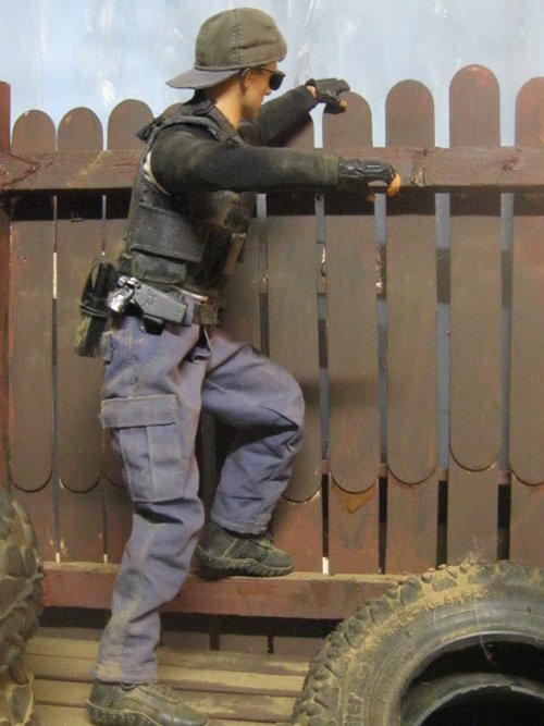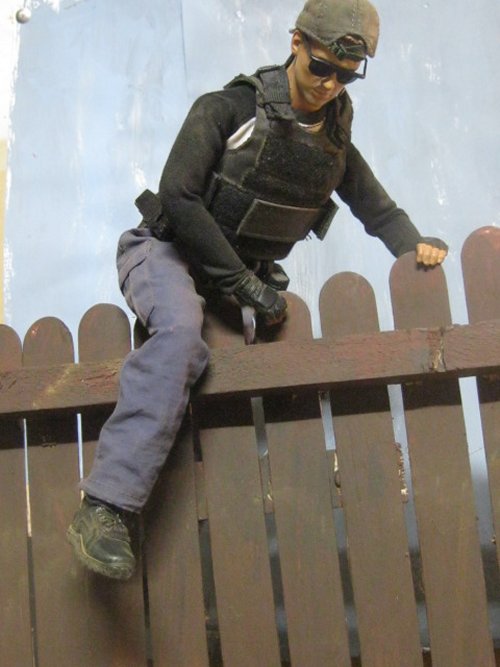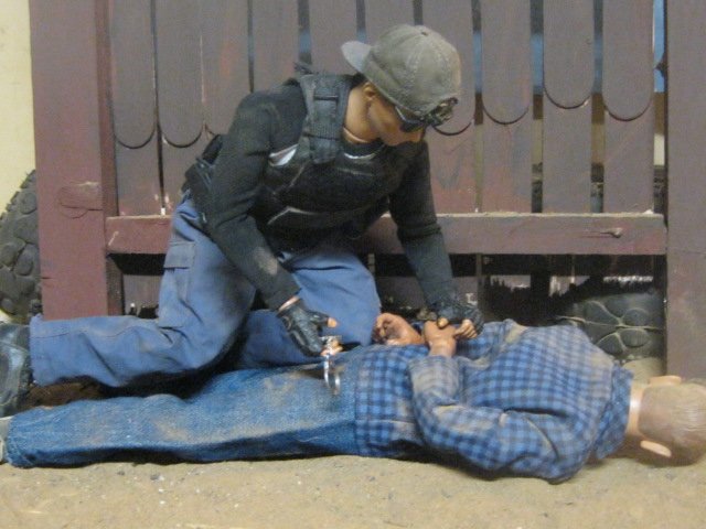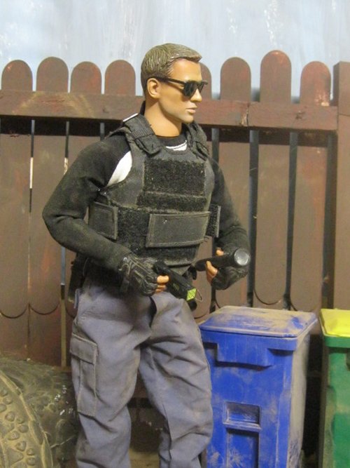 | Here is my bounty hunter/ bailbonds man on the job, his equipment is tasser gun, mace spray, hand cuffs, and a collapsible baton. |