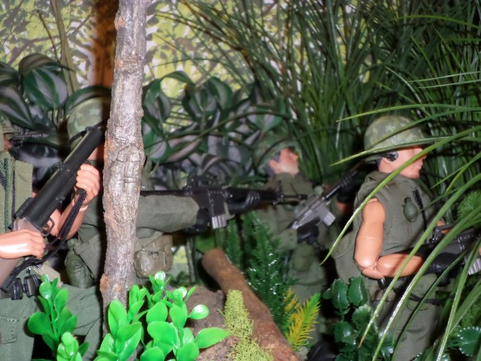 | Nice work again Nickels! I agree with you, the guys got a little bunched up on the trail, but sometimes we have to do what we have to do when space is limited. Still a whole bunch of cool Vietnam troops though - terrific looking photos! Special thanks for sending them in and sharing them with us. - GL |