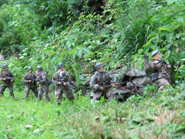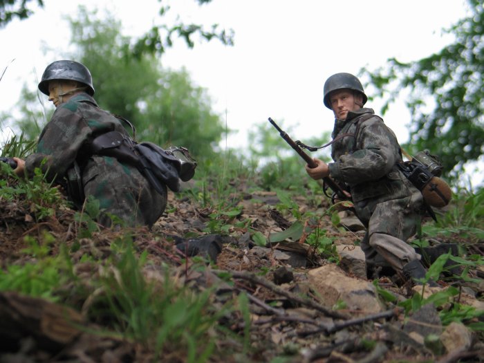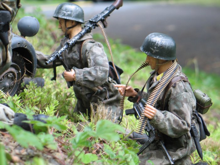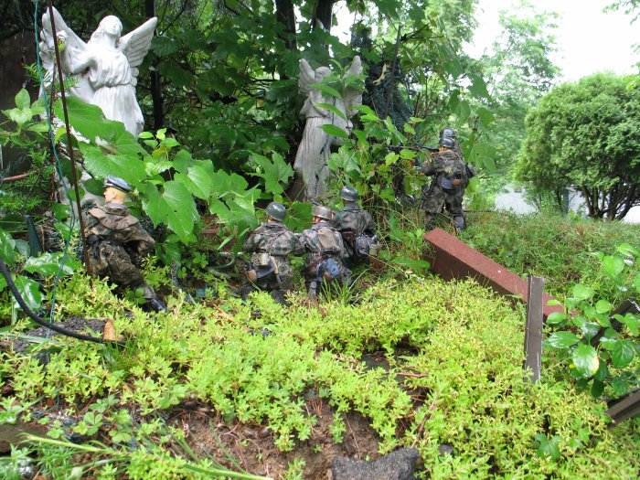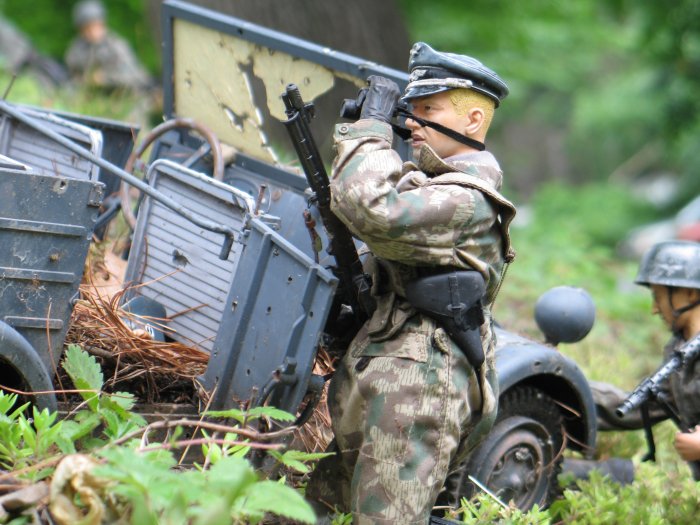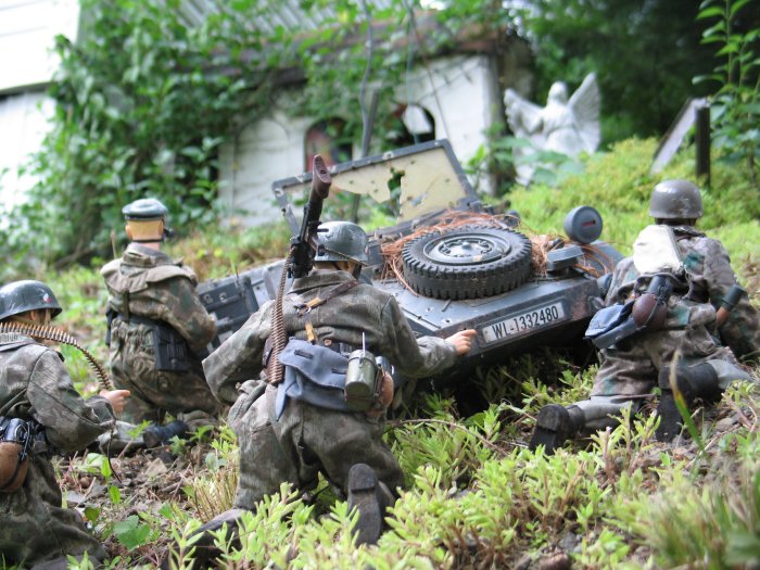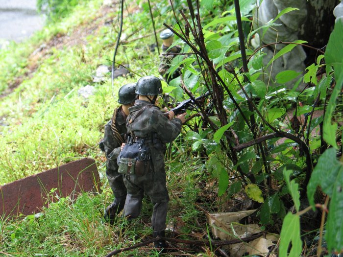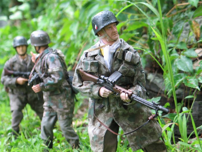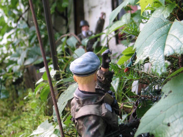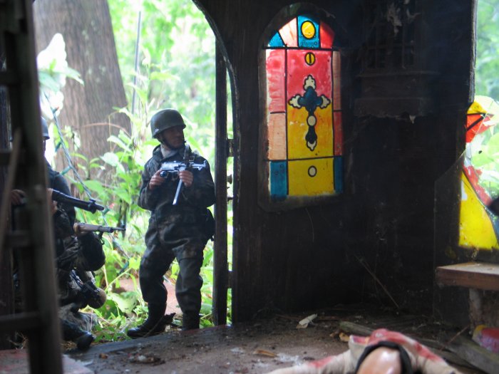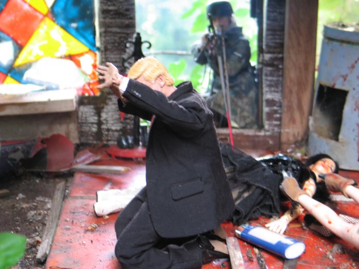 My girls were un-armed as they stood watch over his royal highness in the church, and little did they know that Nazi Fallschirmjeager were creeping into their camp ; sent there by a well known dictator, who's in a disguise of a 3-piece suit and hat, because evil never dies. . . It just changes into a disguise.
