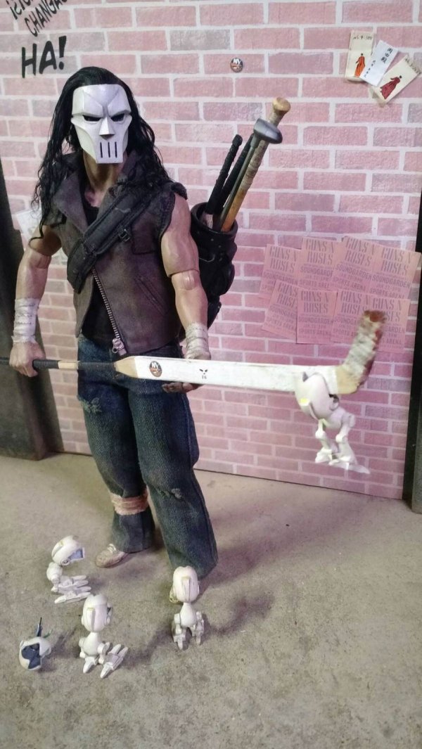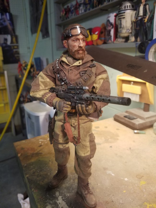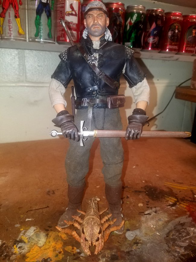 | Here are a few of my recent figs.....Witcher, Star Wars rebel commando and his gun, Green Arrow, Casey Jones |