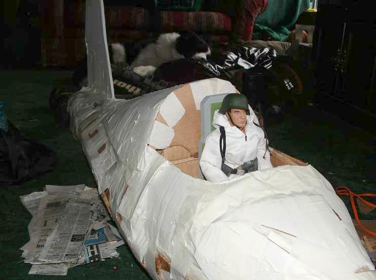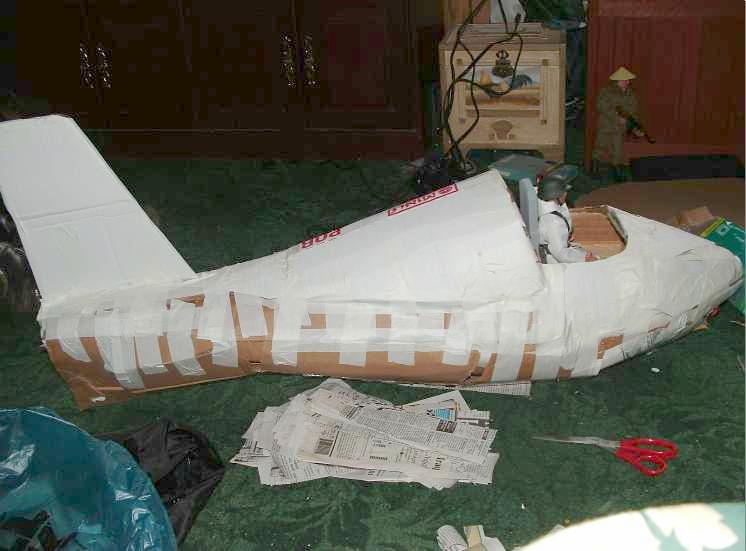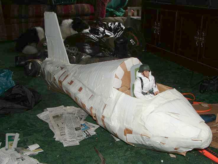 | This is my 1/6 scale Komet, which is as far as I know is the only rocket powered fighter ever made! I made this out of cardboard an then I papermached the whole thing. Here are some pics of it being made. Some of the cardboard used was an old 21st century and a monkey depot box. I hope you like it. - Warriors 1st BN. |