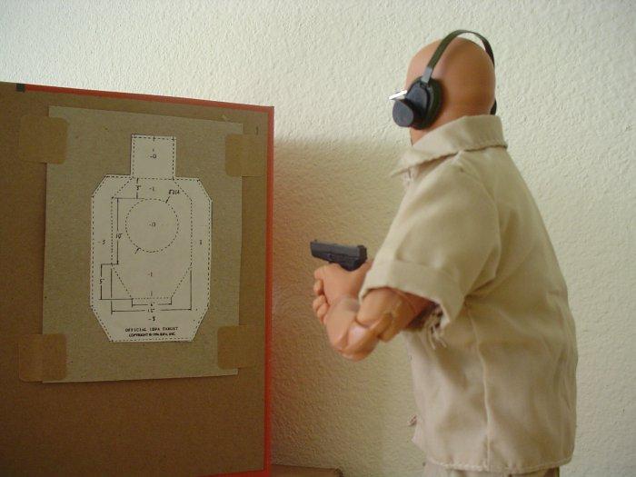 | "Not to be left out, Herdsman takes a few shots with his trusty Glock 23.." |
